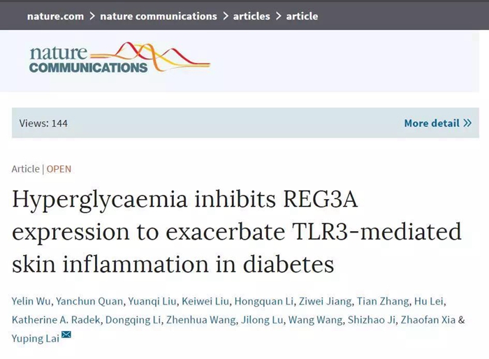The Nature Communications affiliated to the world-famous science magazine Nature, has carried Wu’s report online, which is titled Hyperglycemia Inhibits REG3A Expression to Exacerbate TLR3-mediated Skin Inflammation in Diabetes.