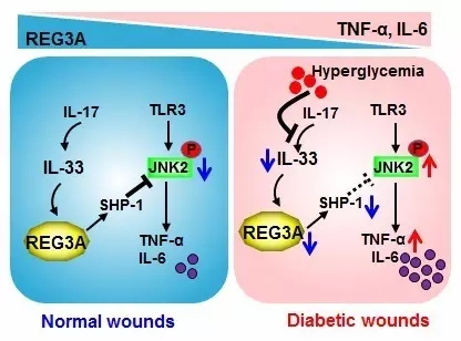 In 2012, the Lai Yuping research group had an article published by the Immunity magazine, which proved REG3A/RegIIIγ can induce the production of keratinocytes to promote healing of skin wounds. Four years later, the group found low expression of REG3A/RegIIIγ in skin wounds of diabetes patients and diabetic mice leads to excessive inflammation of the wounds, which explains why diabetic wounds are so difficult to heal. The study has applied for two patents.