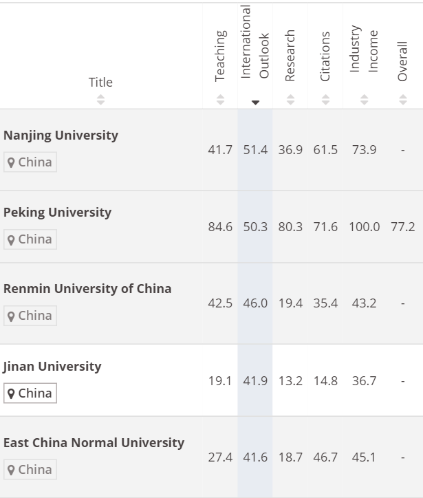 For example, the international outlook category includes the proportion of international staff and students at each institution as well as the institution's international cooperation in scientific R&D.