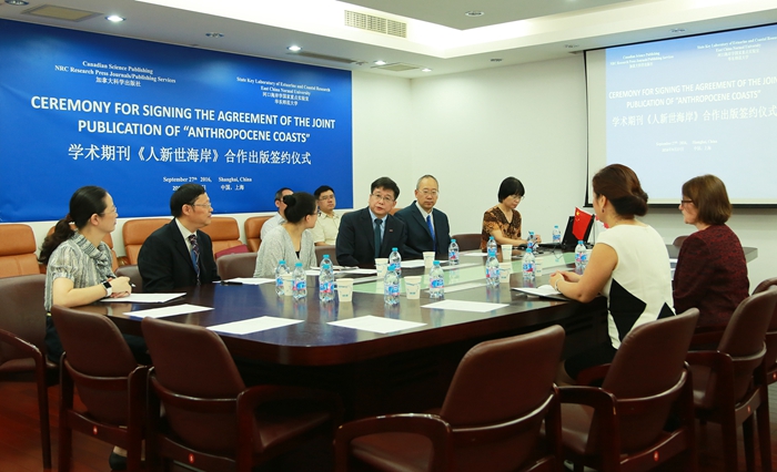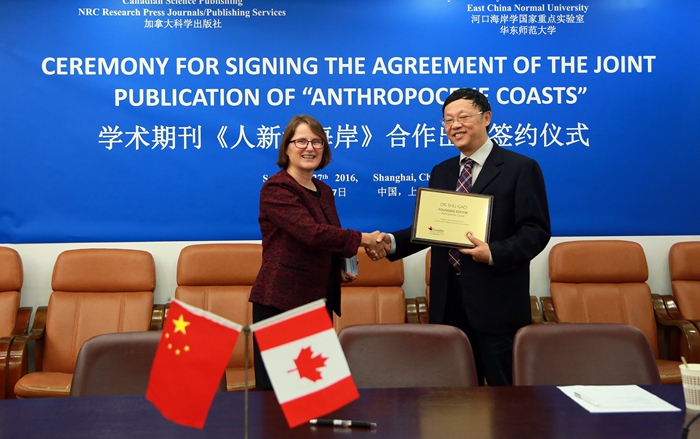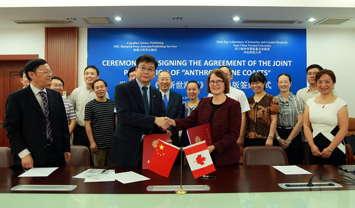 ECNU signed an agreement with Canadian Science Publishing (CSP) on September 27 to jointly publish an international scholarly journal, Anthropocene Coasts.