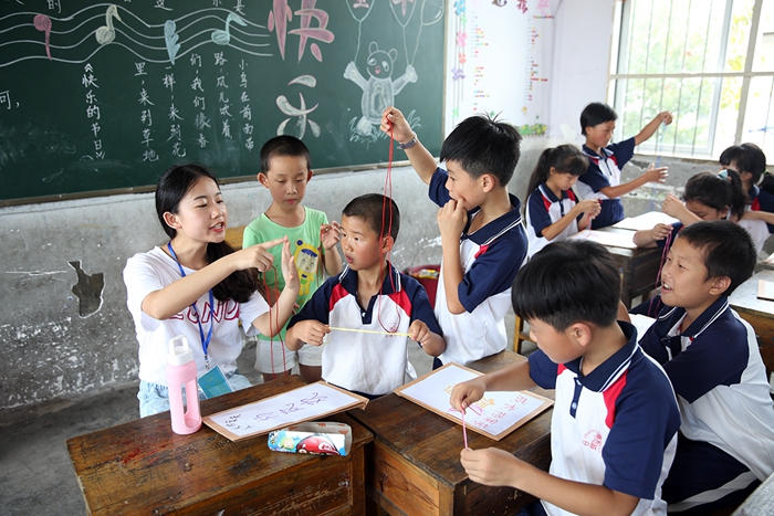 The volunteers, including teachers and students, came to the Lingzhang Primary School in Lingxi Township in Shangrao City, which is more than 500 kilometers away from Shanghai, for “Fonian Love Summer Camp”, which lasts from July 12 to 19.