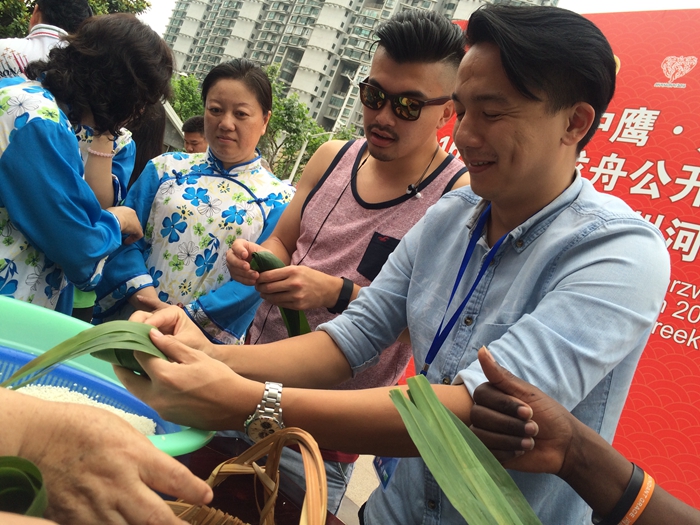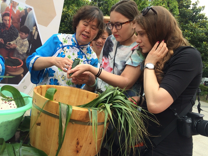 Besides participating in the Dragon Boat Race, the overseas students of ECNU also tried making Zongzi, a glutinous rice dumpling wrapped in bamboo or reed leaves, and other folk customs of the Dragon Boat Festival, which fell on June 9 this year.