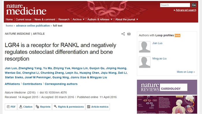 The research results were published online by Nature Medicine, a monthly peer-reviewed medical journal, on April 13, 2016. Luo Jian and PhD. candidate Yang Zhengfeng of ECNU are paralleled first authors of the paper. Liu Mingyao, Luo Jian and Xiao Jianru are parallel corresponding authors. The research team of Academician Ning Guang at Shanghai Ruijin Hospital and some Austrian scientists have also participated in some parts of the research.