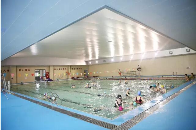 The swimming pool is mainly used for swimming classes during the workdays. Swimming lovers can swim here during its open time.
