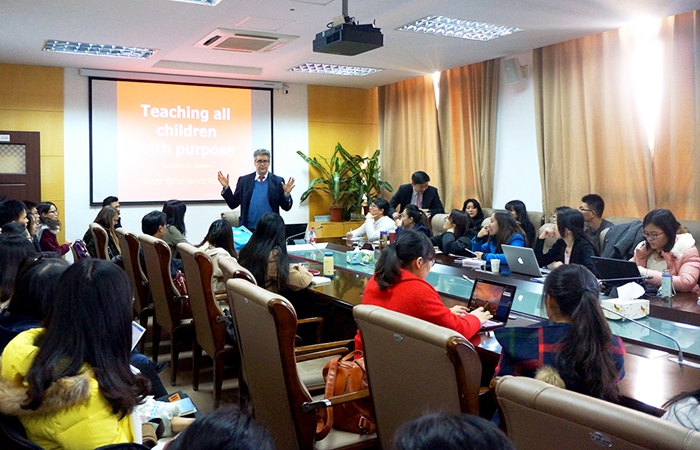 Prof. Reimers gives a lecture to ECNU staff and students alike.