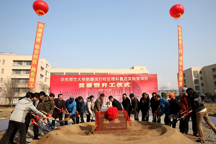 A ground-breaking ceremony for a new lab building was held at Minhang campus on the morning of December 30, 2015. ECNU University Council Chairman Tong Shijun and ECNU President Chen Qun attended the ceremony.