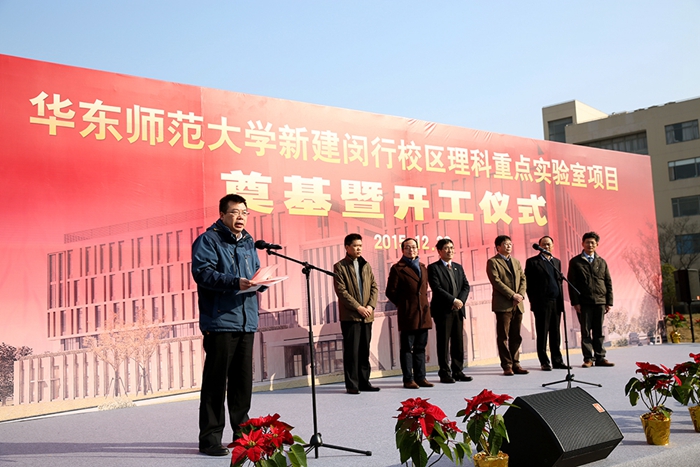 Tong Shijun made a speech on behalf of the university. The lab building would be an important facility of the university, the second important infrastructure project in the year 2015, after the Building for the Estuarine & Coastal Research Institute, he said. The building would be an important platform for physical science research for ECNU, he said. He hoped that the lab would become a model project, and that the constructor would minimize the influence on environment.