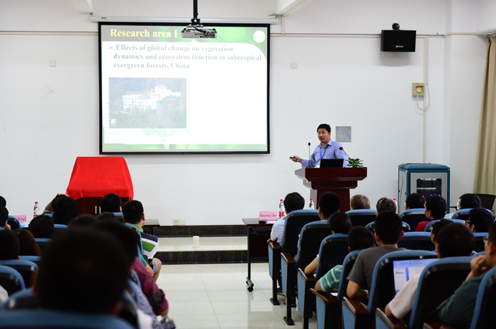 Prof. Zhou Xuhui, Director of the C-GCE, introduced the targets and plans of C-GCE. While gathering the global change researchers of ECNU, C-GCE is open to young researchers in the area from around the world. C-GCE will address key issues related to climate changes including the health of human and ecological systems, ecological safety, water resources, and greenhouse gas emissions. It will closely cooperate with top organizations in the area such as the University of Oklahoma, Michigan State University, CSIRO in Australia, the University of Chinese Academy of Sciences, and the National Climate Center. In cooperation with these organizations, it will study the ecological impacts of global change, provide solutions for global change and other related environmental problems. In the meantime, C-GCE will cultivate inter-disciplinary, high-level researchers.