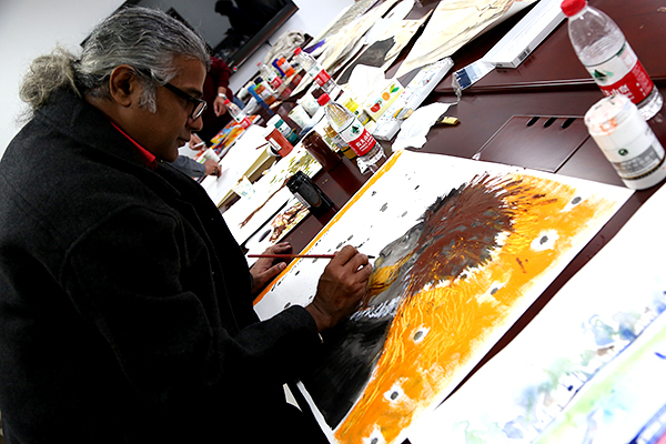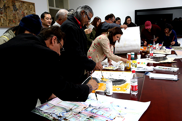 Visiting Pakistani artists and ECNU art teachers hold a painting event together.