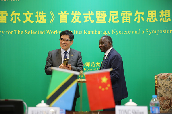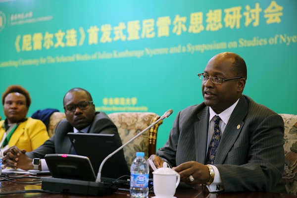 In the outset, I wish to thank the Leadership of East China Normal University for having given me the honor of giving my remarks on this momentous and significant ceremony and symposium, whereby the selected works of a great leader, a revolutionary in thought and action, Mwalimu Julius Kambarage Nyerere of Tanzania, as translated into Chinese is launched.
