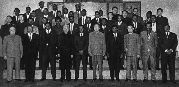 Mao Zedong, Liu Shaoqi and Zhou Enlai meet the delegation led by Nyerere on Februray 1965.
