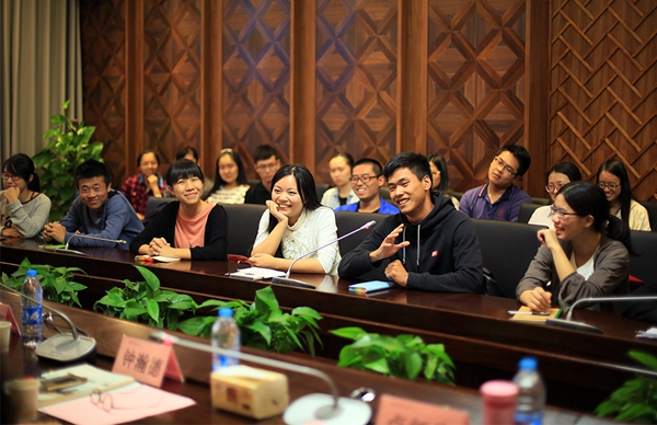Dr. Chung exchanges views with ECNU's winners of Mingde Scholarship.