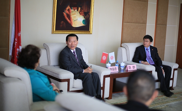 On October 13, University President Chen Qun met with Dr. Chung Hon Dak at the office building of Minhang campus. Chen warmly welcomed Dr. Chung and his team. He expressed sincere admiration and thanks for Dr. Chung’s generous support for the nation’s education system. He also briefly introduced the history and recent developments at ECNU, and hoped that ECNU could cooperate with the Chung Hon Dak Foundation more frequently and with greater depth. Dr. Chung thanked ECNU for its great support for the Mingde Fund, while expressing his wish to increase exchanges and cooperation with ECNU all with the aim of advancing the nation’s educational cause. Yu Shi’en, Executive Deputy Head of the Department of Student Affairs, and Lei Qili, Director of the Office of Academic Affairs, reported the auditing work of Mingde Scholarship and Mingde Teachers Award.