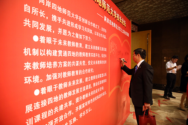 The Fourth Forum for Presidents of Normal Universities in the Greater China Region was held at East China Normal Universities on October 12, 2015. Presidents of 18 different normal universities from the Chinese mainland, Hong Kong, and Taiwan signed the “Shanghai Cooperation Vision,” and had in-depth conversations and debated on the theme of the “Mission of Normal Universities —— New Momentum for the Development of Teachers and Education.”