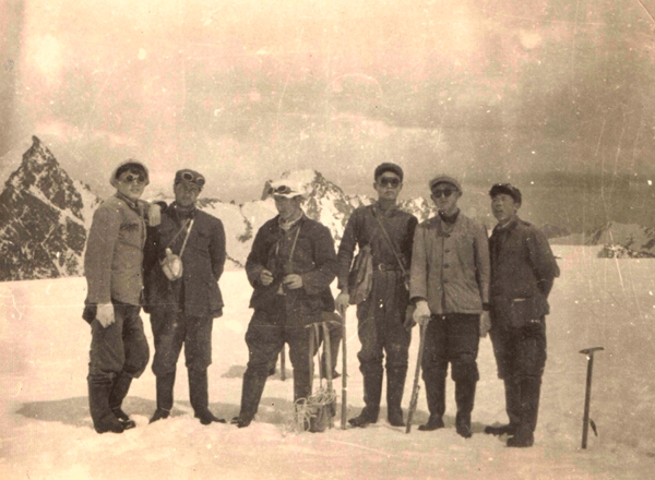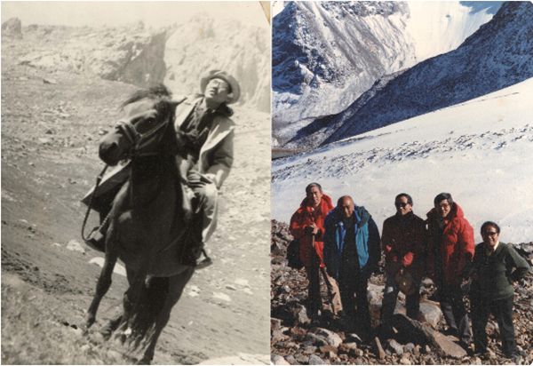 1960, Xu (L1) makes a research on the Pingding Glacier of the Tianshan Mountains.