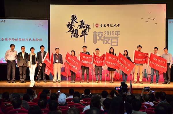 After Mei’s speech, school representatives presented flags to the alumni. Alumni representatives recollected about their time here at ECNU, and expressed their best wishes to their mother school. Teachers thanked alumni for their contributions to the university, and invited them to come back often.