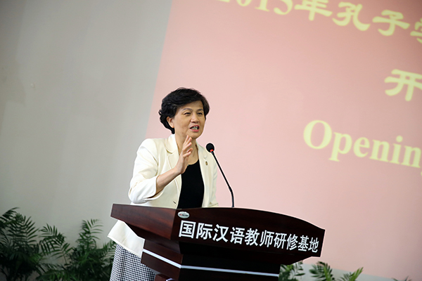 Madame Xu Lin emphasizes the importance of Confucius Institutes in her speech.