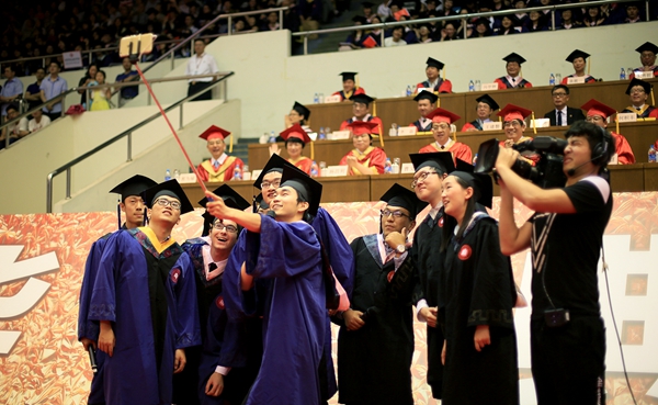 On June 28,2015, Commencement was held on the Zhongbei Campus. This year, each graduate received three special gifts: a copy of the University Newspaper printed with the names of all of this year’s 6,648 graduates, a set of academic gowns with the ECNU logo, and an exquisite Memorial brochure.