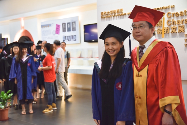 Chen is regarded by students as one of the most popular Presidents in E CN U history. On June 28, he spent three and a half hours taking photos with graduates at the University History Museum after the Commencement ceremony. Taking photos with the University President on Commencement Day has become a must-do for graduates over the pa p st three years.
