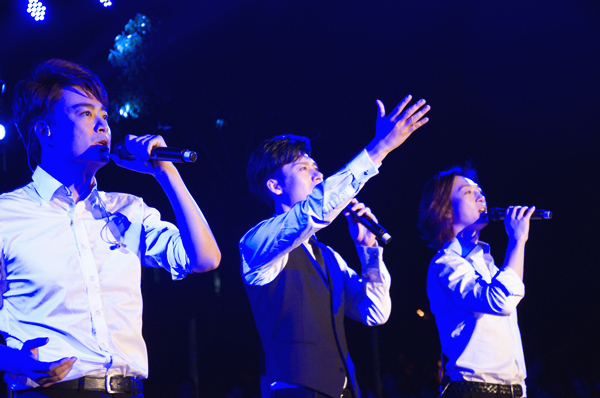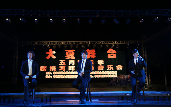 The band members, Wang Zhida, Yu Di, and Song Gang, provided the audience with a feast of beautiful songs that included Man of La Mancha, Hymne à l’Amour, The Prayer, Hawthorne Tree, Andante, Les Rois du Monde, My Destiny, You Raise Me Up and so on. They made the stylistic switch from Bel Canto to pop seem natural, and their unique approach to these familiar songs gave the performance a personal touch. Their lively dancing and friendly interactions with the audience overwhelmed the University Library lawn with cheers and applause.