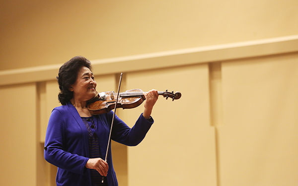 After introducing the background of the concerto’s creation, Yu continued her explanation while playing the violin. Her performance was so vigorous and elegant that the audience could not believe her to be 74 years old. Yu’s vivid and humorous interpretation was greeted periodically with enthusiastic applause by the audience throughout the program, while her wonderful performance of the concerto even moved some audience members to tears.