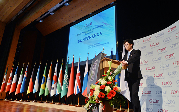 ECNUers attended the academic conferences and the G20 Youth Summit. Eight teachers and students, on behalf of the university, participated in the academic conferences’ discussions, delivering reports on economics and finance, social affairs and drug management, environmental ecology and energy, global policies and international relations, as well as education and youth development, in addition to other pressing issues related to humanity. These ECNU representatives were: Professor Zhou Limin from the School of Geographic Sciences, Professor Lai Yuping from the School of Life Sciences, Professor Li Jiacheng from the Faculty of Education, Professor Liu Liangjian from the Department of Philosophy, Li Houli, a Master’s student from the School of Advanced International and Area Studies, Niu Xiaodan, a Ph.D candidate from the School of Ecological and Environmental Sciences, and Chang Tianjiao and Cao Dingxian, two undergraduate students from the School of Finance and Statistics.