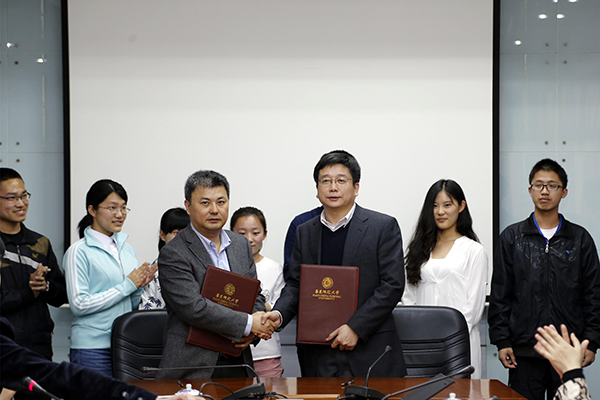 Li Lin (Left) and Chen Qun sign a cooperation agreement on behalf of both sides.