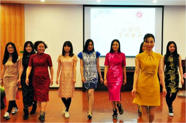 Members of the Cheongsam Cultural Association hold a show with various cheongsam dresses.