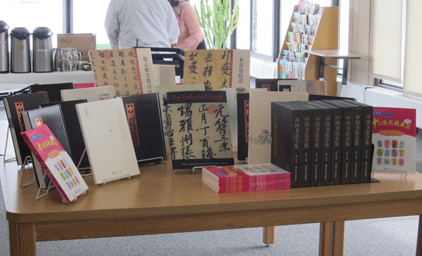 The ceremony for the book donation and establishment of the Calligraphy Corner is held.