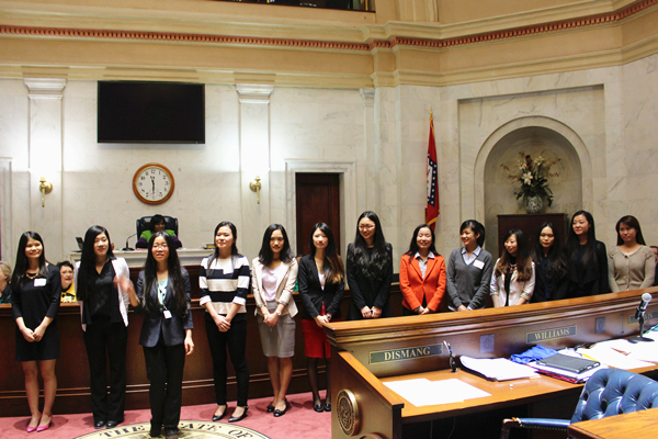 Led by Jane English, an ADE official and a Senator, all of the Chinese teachers were introduced to the state senators while the 90th Legislature was in session. The senators all stood up to applaud the teachers, then shook hands with each of them, giving special thanks to the teachers for their contributions to Arkansas.