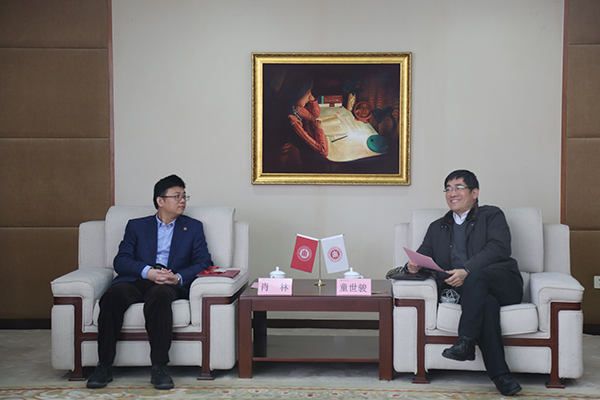 Xiao Lin (Left) and Tong Shijun (Right) exchange views.