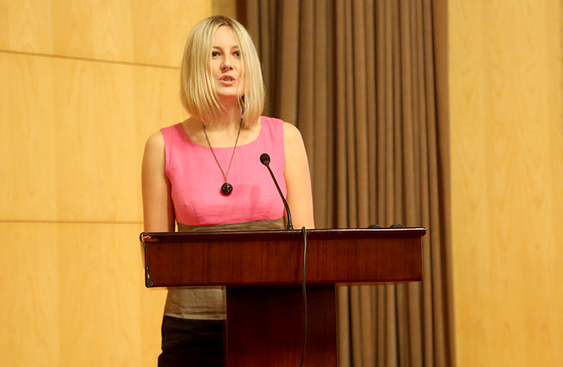 On behalf of the overseas students, Ye Lina, a student from Belarus, shared her life experience in ECNU with all the new overseas students and advised them to take part in the university activities and to make friends with students of China and other countries.