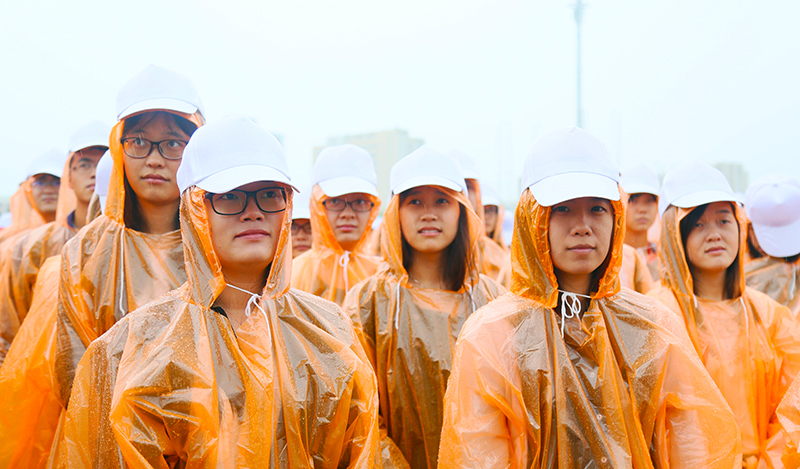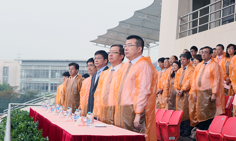 Students and teachers attend the ceremony held on Zhongbei campus.