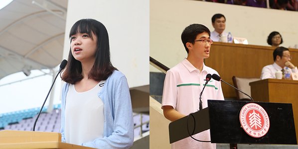 As teacher representatives, Prof. Wu Jian, a PhD supervisor and member of State Key Laboratory of Precision Spectroscopy, and Prof. Sang Biao, Dean of School of Preschool & Special Education, addressed on the ceremony. They shared with the new students their own experiences in ECNU and put forward several suggestions and proposals in how to live a wonderful university life. Besides, 6 student representatives also expressed their feelings and vision s of the future on the ceremony.