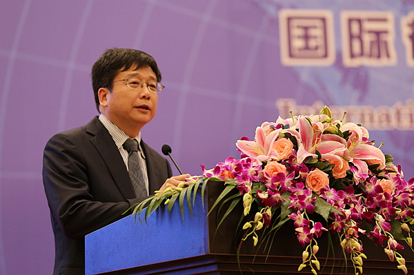 ECNU President Chen Qun delivers a welcome speech on the opening ceremony.