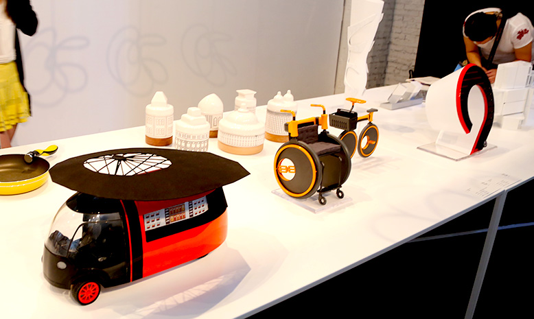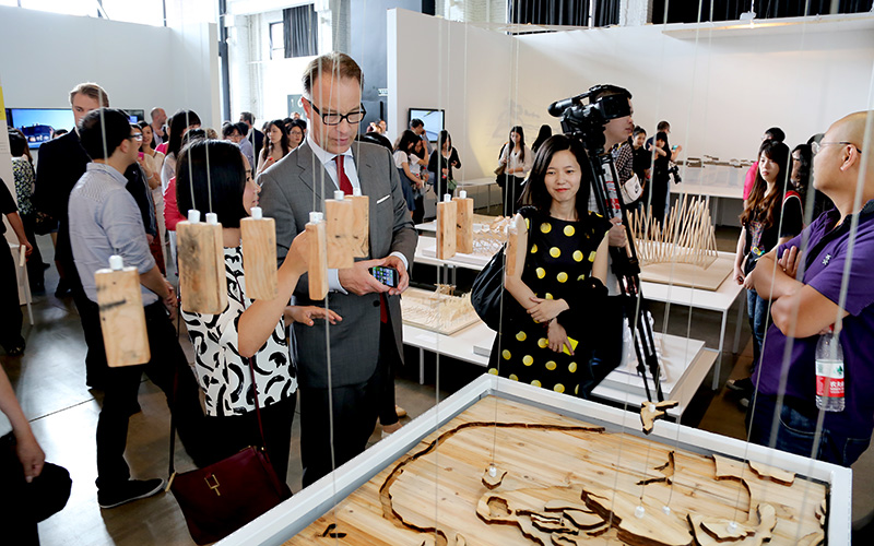 Mantis concept bicycles, intelligent cutting boards, bamboo pens made from wastes, touching picture books for blind children, E-phones for the aged… the well designed works of 10th Anniversary & 2014 Graduation Exhibition of ECNU’s School of Design was kicked off on June 5 at 800 Show, a famous art gallery on Changde Road.