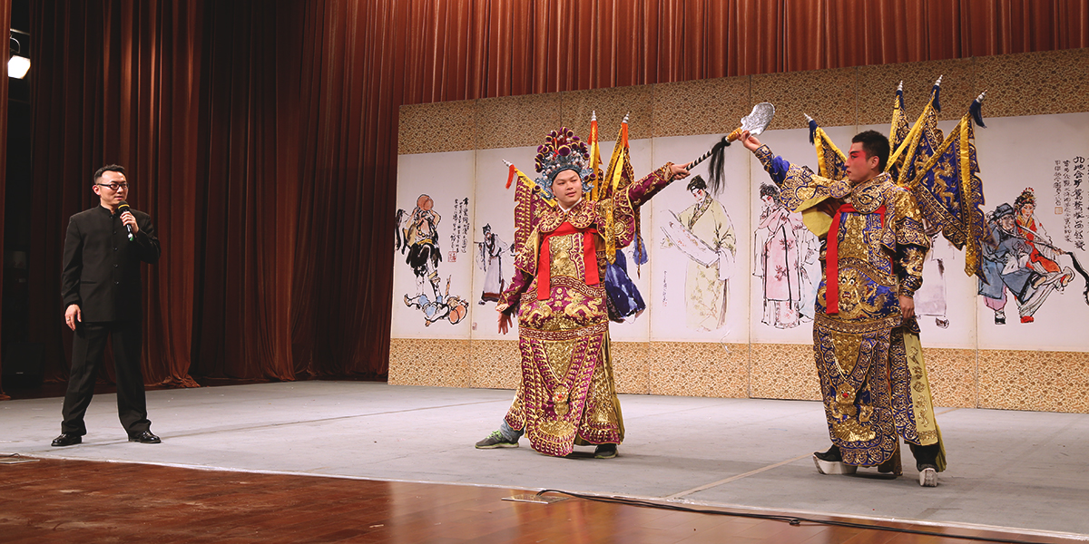Ji Yunfeng, a national class-B artist and a Wusheng (an actor playing a martial role in Chinese operas), hosted the show. With his introduction, the performers demonstrated the features of various roles in Kunqu Opera: Sheng (a common name of male characters ), Dan (the general name for female characters), Jing (painted face often refers to male characters with unique appearance or personality), Mo (roles of middle and old aged men), and Cho (a comic role ).