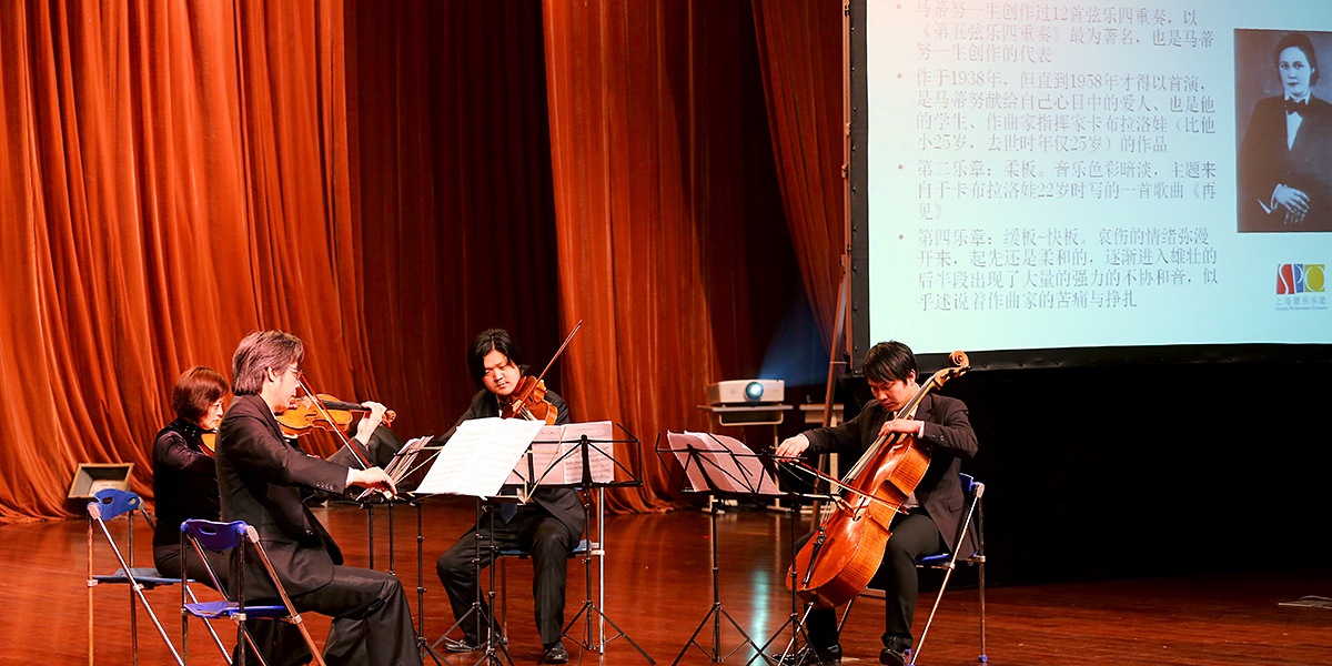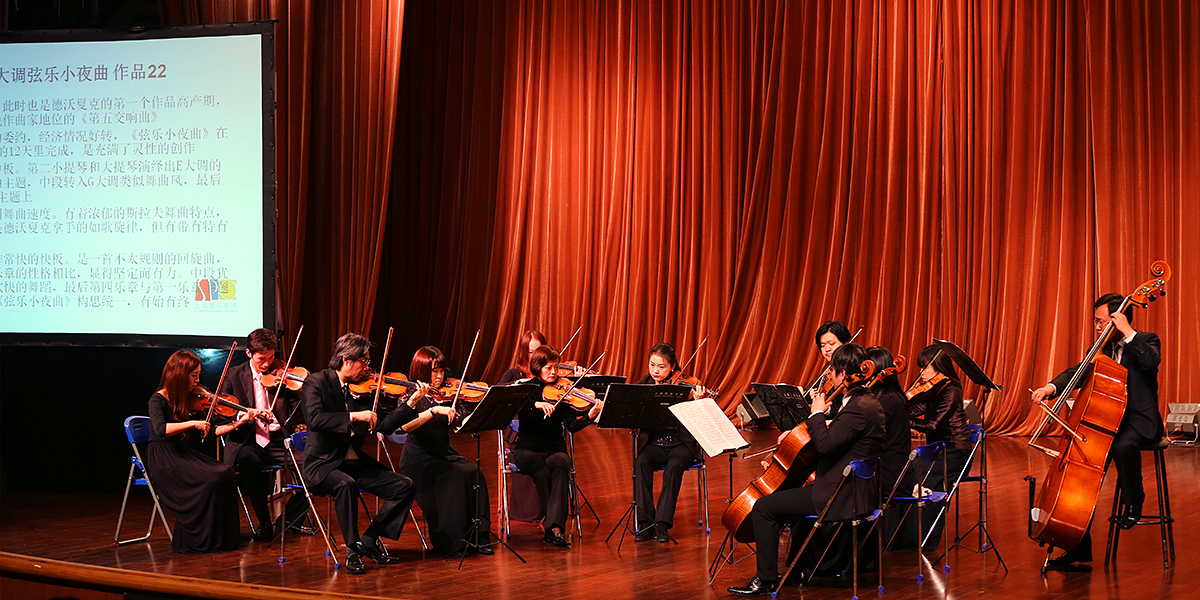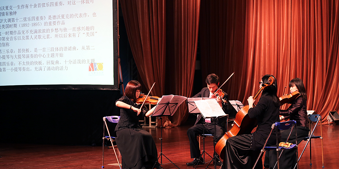 On March 25 night, the concert “Flavor of Bohemia” held at the concert of Zizhu Basic Education Park on Minhang Campus. Before the performance, Han Bin introduced the charm of Bohemia music and the major features of the music works of Bedrich Smetan, Antonín Leopold Dvořák, and Bohuslav Martinu, three famous Czech composers. The concert started by Smetan’s My Life, and then followed by Dvořák’s Juilliard Quartet/Ma'alot Quintet and Martinu’s String Quartets No.5.