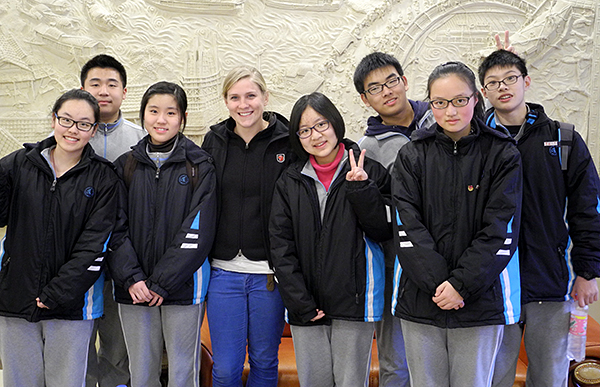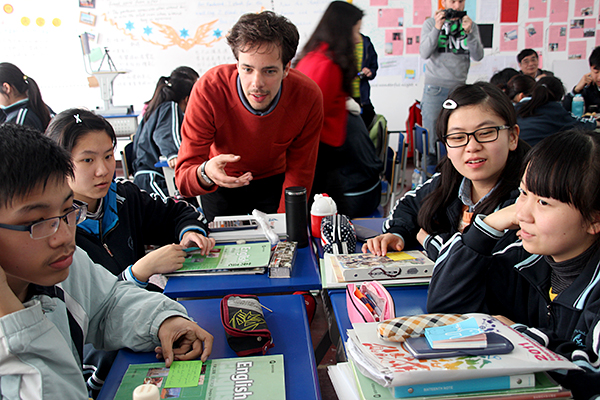 The four German students make their practice in Caoyang No.2 High School.