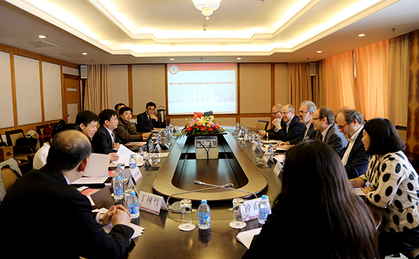 On the morning, Chen Qun, President of ECNU met the delegation and held a meeting on further the cooperation between the two universities. Chen first expressed welcome to the delegation and then introduced the history, discipline characteristics, research and the internationalization process of ECNU in detail. Then Chen briefly recalled the cooperation plans discussed with Viviers during the 1st Meeting of the EU-China Higher Education Platform Cooperation and Exchange (HEPCE) held in April, 2013.