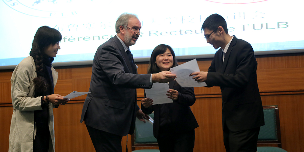 Viviers awards ULB scholarship to the first three joint-trained Ph.D candidates from ECNU.