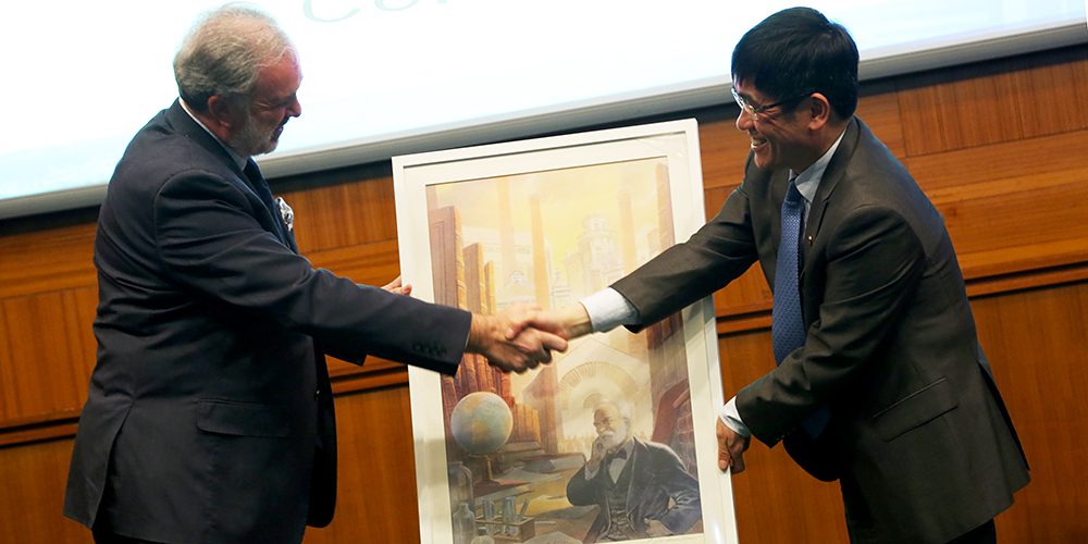 In the end of the meeting, Chen sincerely invited François Englert, a professor of ULB and 2013 Nobel Prize laureate in physics, to visit ECNU this year. He asked Viviers to present the invitation sighed with his signature to Englert.