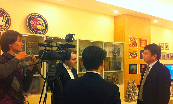 Chen Qun accepts an interview with Belarus Capital TV Station.