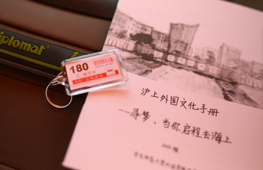 School of Foreign Languages provides new students with key rings and Shanghai Foreign Cultures Handbooks.