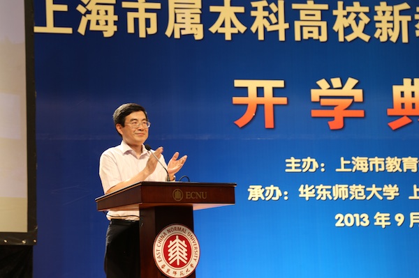 Su Ming, Director of Shanghai Municipal Education Commission, encourages new teachers in his speech.