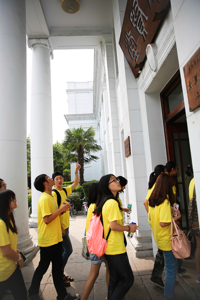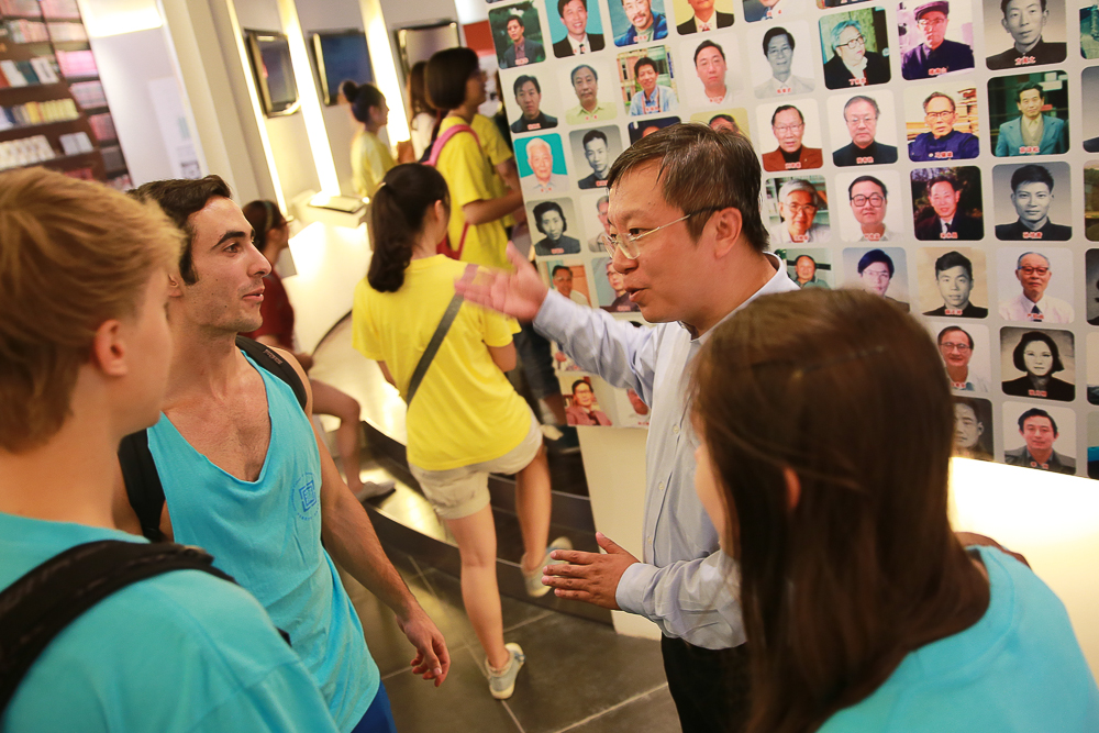 In the University History Museum, all the students gathered around Xu Xiaochu, the guide of the museum, and asked various questions about the university history. Ren Youqun’s arrival and his excellent introduction of the university in English gave the students a pleasant surprise.