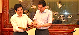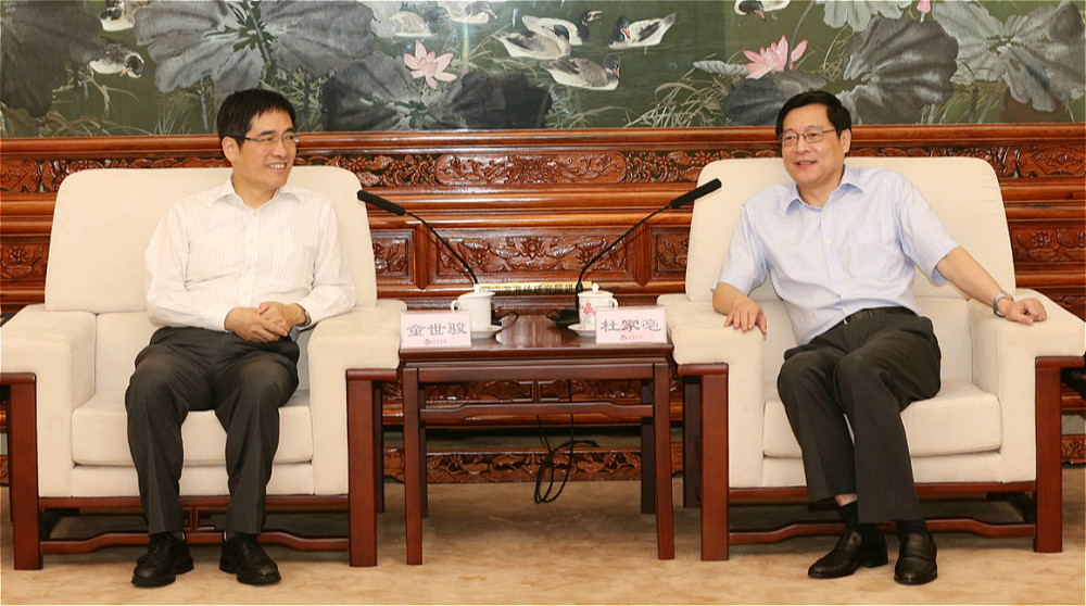 ECNU delegation led by Tong Shijun, Chairman of the University Council, Cao Wenze, Executive Vice Chairman of the University Council, and Vice President Guo Weilu visited Du Jiaha, an alumnus of ECNU and Governor & Deputy Communist Party Chief of Hunan Province, before the agreement signing ceremony.