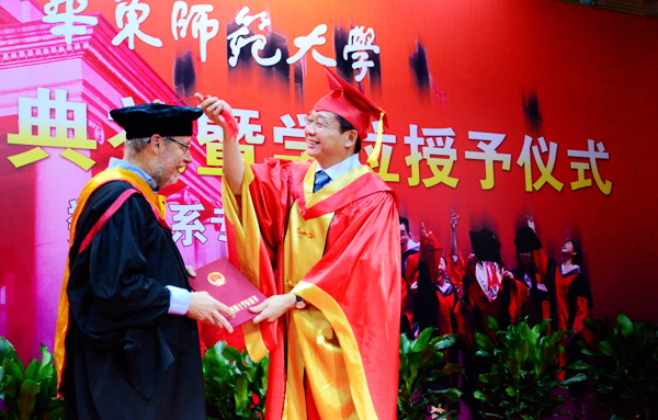 On the afternoon of June 24, Prof. Uffe Haagerup received an honorary doctorate from ECNU at the Campus Center on Minhang Campus, and became the first world renowned scholar who had received an honorary doctorate from the University.