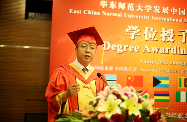 On the morning of July 1st, 2013 Commencement of International Master of Education Program for Developing Countries was held on Zhongbei Campus. 24 Students of 17 countries of Asia, Africa and Latino America received their degree certificates after 10-month study in ECNU.