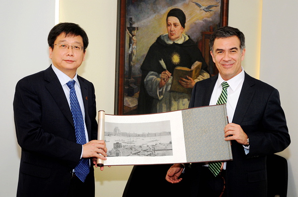 When visiting in Saint Thomas University (UST), Chen had an exchange meeting with UST Rector Jaime Vatter Gutiérrez, Roberto Lafontaine, Director of UST's International Exchanges Office and Paulina Dittborn, Dean of UST's School of Education. During the meeting, they reviewed the cooperation between both sides since ECNU and UST established intercollegiate relationship in 2010 and had a in-depth discussion to further promote the cooperation between the two universities including exchanges between students and teachers.